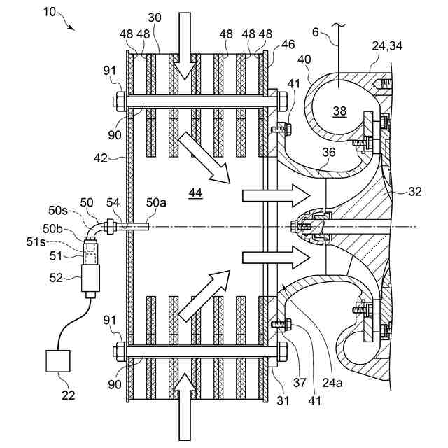 コンプレッサ24のサージングが発生した場合の空気の流れを示す図である。