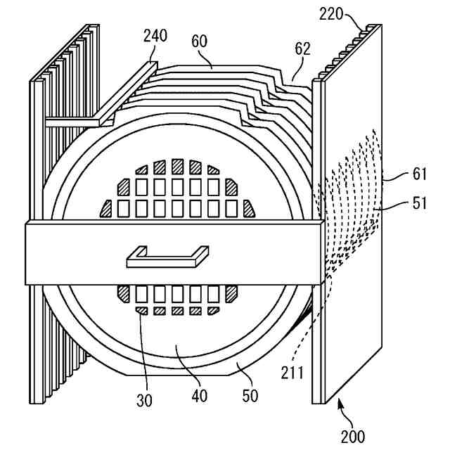 特許文献1の放射線照射装置には、放射線により粘着力が低減するシートに貼り付けられた半導体ウェハと放射線源との間に、放射線の照射を部分的に抑止するマスクを配設する技術が開示されている。マスクを配設することにより、非矩形チップに接着されるシートの領域に対しては放射線を遮蔽することができ、粘着力を維持することができる。一方で半導体チップに接着されるシートの領域に対しては放射線を照射でき粘着力を低減できる。