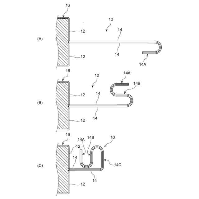 前記周縁部の先端部を一方向に180度折り曲げた後、前記一方向とは反対方向に180度折り曲げ、更に前記反対方向へ90度折り曲げる折曲工程と、