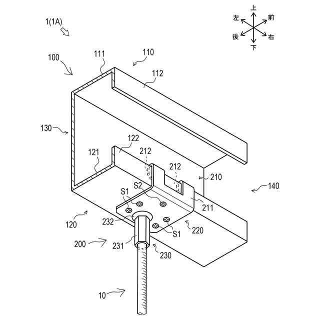 前記空間内に配置された頭部と、前記頭部から前記第二部分を介して下方へ突出するネジ部と、を有するボルト部材を含み、