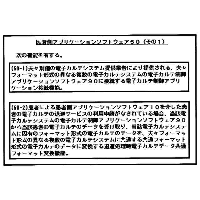 夫々個の電子カルテシステム提供業者により提供される、夫々フォーマット形式の異なる複数の電子カルテシステムの電子カルテ制御アプリケーションソフトウェアに接続する電子カルテ制御アプリケーション接続機能と、