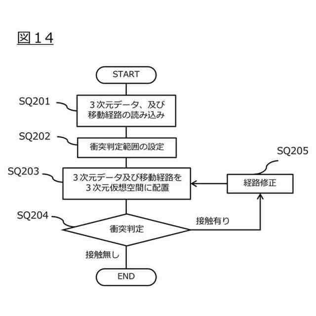 前記衝突判定部は、前記3次元データと前記移動経路との接触を検知した場合に、当該
