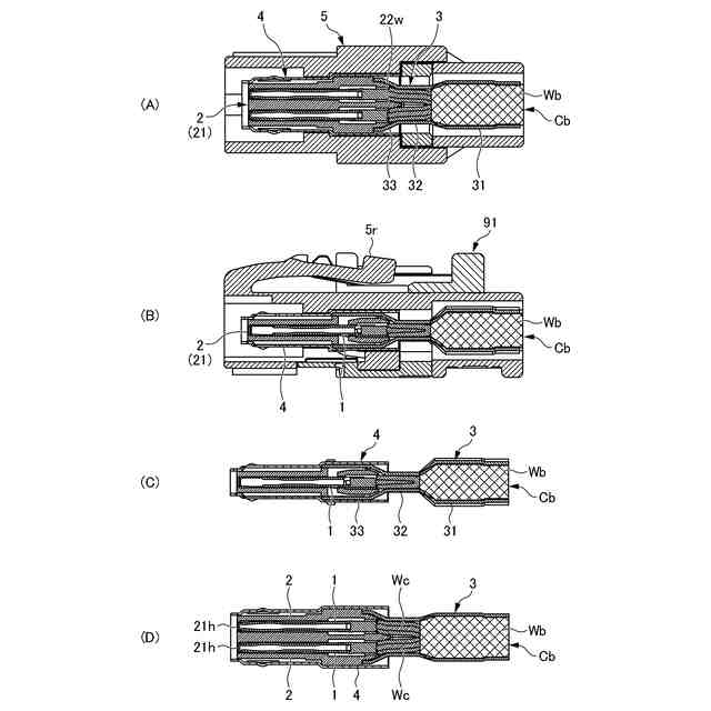 一方の端部に形成し、前記芯線を圧着により接続するコンダクタバレルを有する電線接続部と、