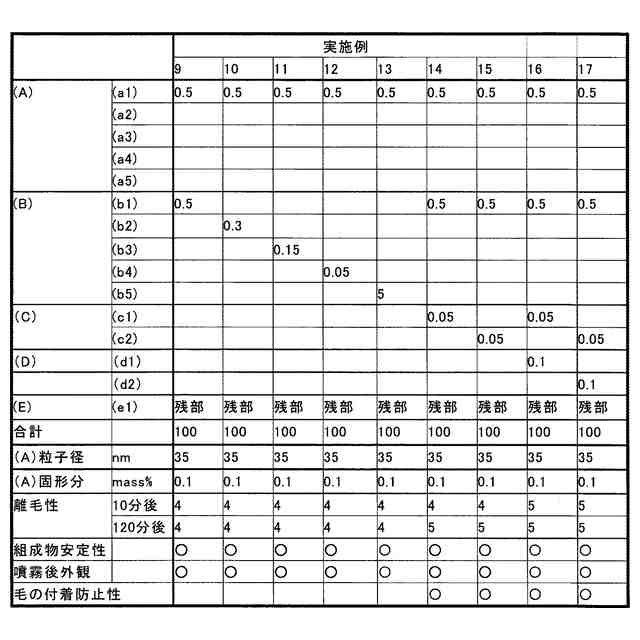 近年、犬及びネコなどのペットは、一般に家庭内で飼育される。ペットの抜け毛が家庭内に散乱するので、その抜け毛の除去は、清潔に暮らすために重要である。特に、布、カーペットなどに付着した抜け毛の除去は、掃除機、ブラシなどを使用したとしても、容易ではない。従って、ペットの抜け毛を容易に除去することを可能にする組成物が求められている。