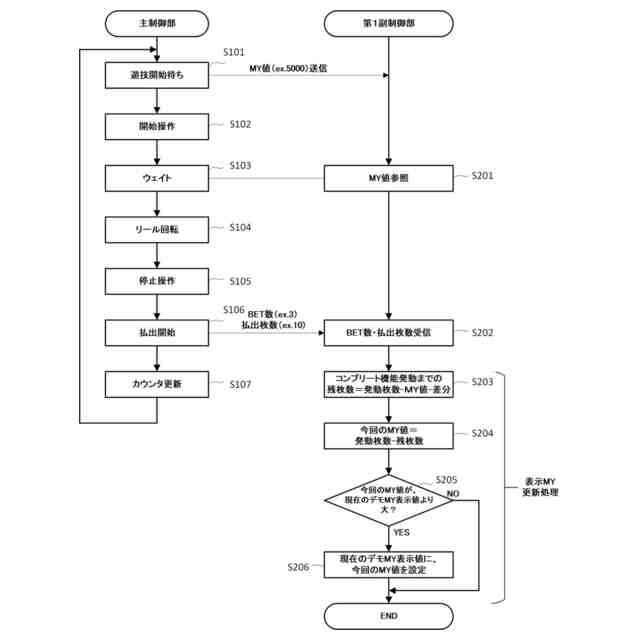 本発明の一実施形態に係るスロットマシンの最高枚数更新処理の流れを示すシーケンス図である。
