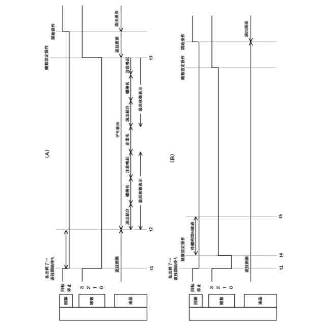 (A)は、本発明の一実施形態に係るスロットマシンのデモ画面遷移に関するタイムチャートであり、(B)は、従来のスロットマシンのデモ画面遷移に関するタイムチャートである。
