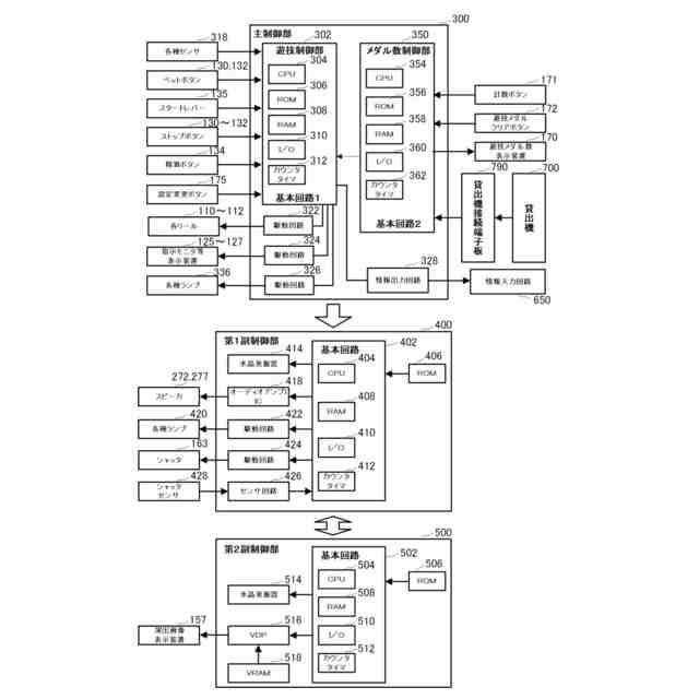本発明の一実施形態に係るスロットマシンの制御部の回路ブロック図である。