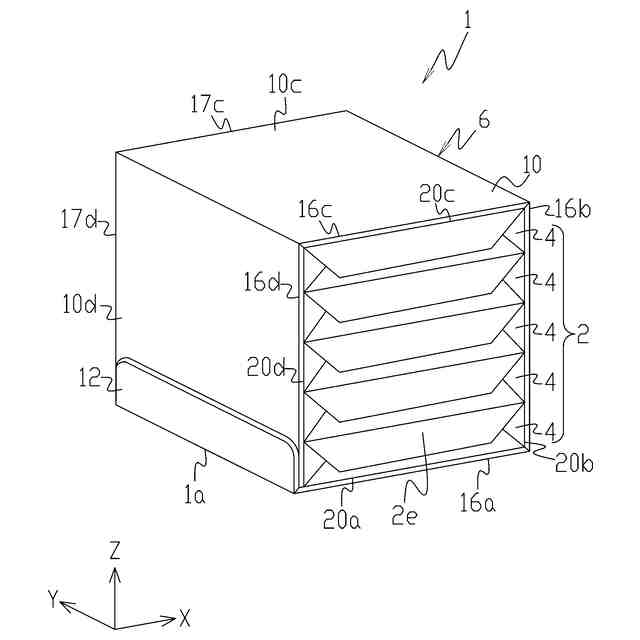 以下、図面を参照して、本発明の実施の形態に係る包装材、該包装材により包装された包装物、及び該包装材により被包装物を包装する包装方法について説明する。図1はこの実施の形態に係る包装材の構成を示す展開図、図2はこの実施の形態に係る包装材により被包装物を包装した包装物の構成を示す斜視図、図3はこの実施の形態に係る包装材及び該包装材により包装される被包装物の構成を示す斜視図である。なお、以下において、図1に示すXYZ直交座標系を設定し、この直交座標系を参照しつつ各部の位置関係等について説明する。X軸を図1の紙面左右方向、Y軸を図1の紙面上下方向、Z軸を図1の紙面に直交する方向に設定する。