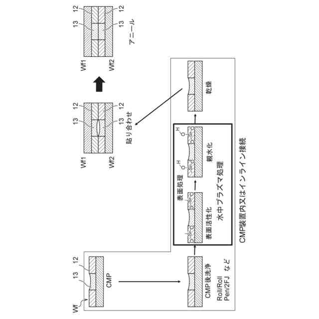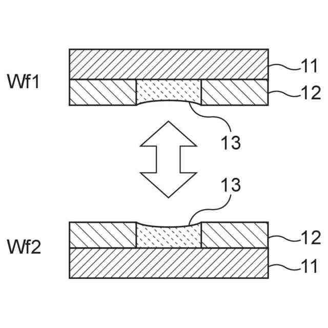 図1Aは、誘電体表面のみを含む接合面を有する基板Wf1及びWf2を接合する例を示す。同図において、基板Wf1は、基板本体11と、基板本体11上に形成された誘電体膜(誘電体表面)12と、を有する。基板本体11は、Siその他任意の基材を含み、電子回路が形成されたものであっても、電子回路が形成されていないものであってもよい。この例では、基板Wf1の接合面は、誘電体表面12のみ含む。図1Aに示すように、基板Wf2も、基板Wf1と同様の構成を有する。この場合、基板Wf1及びWf2が接合されたとき、基板Wf1及びWf2の誘電体表面12同士が互いに接合される。