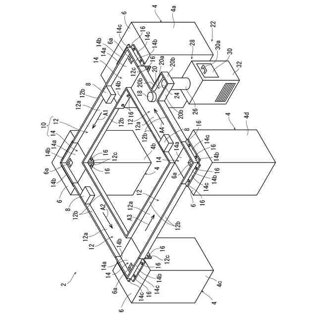 また、本出願人は研削装置、切削装置、レーザー加工装置等の加工装置と複数のウエーハを収容したウエーハ保管装置等を含む処理装置の天板を利用して走行路を配設し、処理装置間を自動搬送装置が走行してウエーハ保管装置から各加工装置にウエーハを搬送したり消耗品を搬送したりする搬送システムを開発した(たとえば特許文献1参照)。