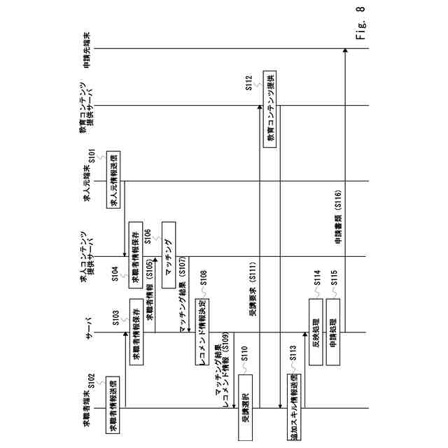 特許文献1には、求人者と求職者とのマッチングを行う処理システムが開示されている。特許文献1では、サーバは、端末装置に、スキル及び価値観に関するテストを提供し、求職者のテスト結果を基に、求職者のスキルを数値化するとともに、求職者の価値観が複数の価値観のうちいずれに該当するかを判定する。数値化された求職者のスキルが、求人者が示すスキルのボーダーラインに満たない場合には、不足するスキル及び、スキルを補う学習カリキュラムを提示する。