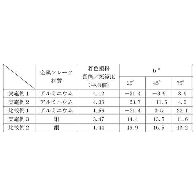 【解決手段】金属フレークと、金属フレークの表面の少なくとも一部に付着した着色顔料とを含み、着色顔料は、短径に対する長径の比の平均が1.60以上100以下である。