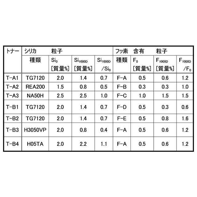 ≦1.0」を満たす。所定印刷前のトナー粒子におけるフッ素含有粒子の含有率F