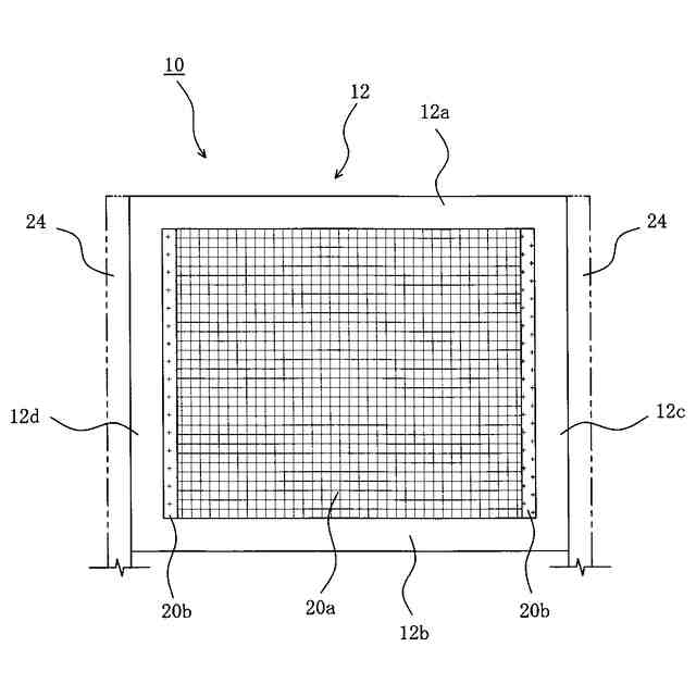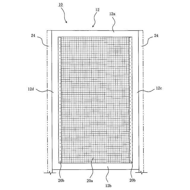 【解決手段】フレームの左側又は右側の部材に取り付けられた第1ブラケットを備え、第1ブラケットが、取り付けられた部材と平行に配置された第1部分、及び第1部分のフレームの中央の側に位置する端に第1部分と直交するように配置された第2部分を有し、第2部分のねじ穴に、先端が中央の側と反対側に位置するようにねじ込まれた調整ボルトと、フレームの開口を覆うネット構造体と、第1部分、第2部分及び取り付けられた部材によって形成された凹所内に配置された垂直部材とを備え、ネット構造体に取り付けられたリング状部分に垂直部材が通され、先端を垂直部材に接触させて調整ボルトをねじ込むことによりネット構造体を展張させるように構成されている。