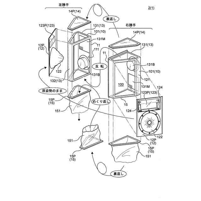 本体骨格部を天地反転させた状態で、天面パネルと、底面パネルとは、それぞれ裏返し状態にして、本体骨格部に取り付ける一方、操作面パネルは、本体骨格部を天地反転させる前の原姿勢を保った状態で、本体骨格部に取り付けることにより、ボックス本体を左右勝手切換自在としたことを特徴として成るものである。