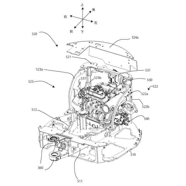 またある側面においては、油圧ショベルのエンジンルームの上方に、警告灯や警告ブザー等の機器を置く場合がある。特に小型の油圧ショベルにおいて、エンジンルームの上方に機器の設置スペースを確保できない問題が発生する可能性がある。