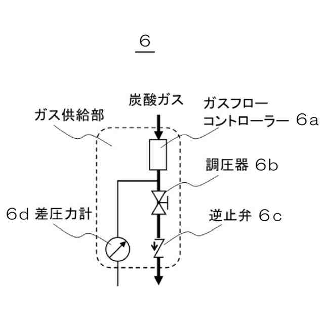 炭酸ガスの供給圧力は、前記供給経路の圧力よりも0.02-0.10[MPa]の範囲内で大きい、