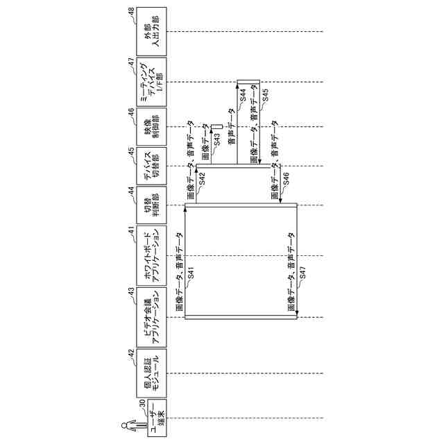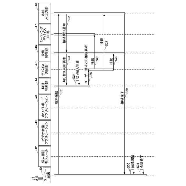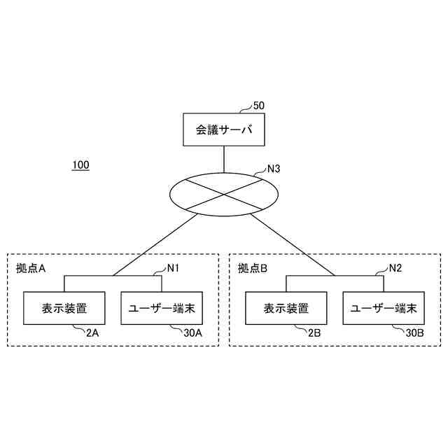 コンピュータ制御のホワイトボード装置又は手書き入力が可能なアプリケーション(以下、表示装置という)には、ネットワークを介して他の拠点の表示装置と通信できるものがある。一方の拠点の表示装置への手書き入力は他方の表示装置にもリアルタイムに表示される。また、表示装置にカメラ、マイク又はスピーカーの機能を有するミーティングデバイスが搭載されている場合、表示装置は各拠点の画像データと音声データをリアルタイムに表示でき、会議などの遠隔コミュニケーションに利用される。