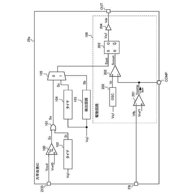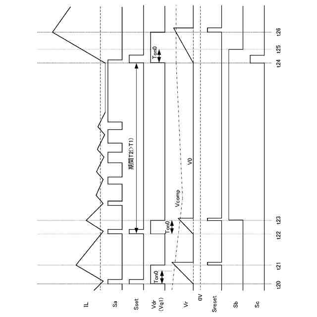 前記インダクタ電流が所定値より小さくなると、前記トランジスタをオンし、前記出力電圧に応じた期間が経過すると、前記トランジスタをオフする駆動回路と、