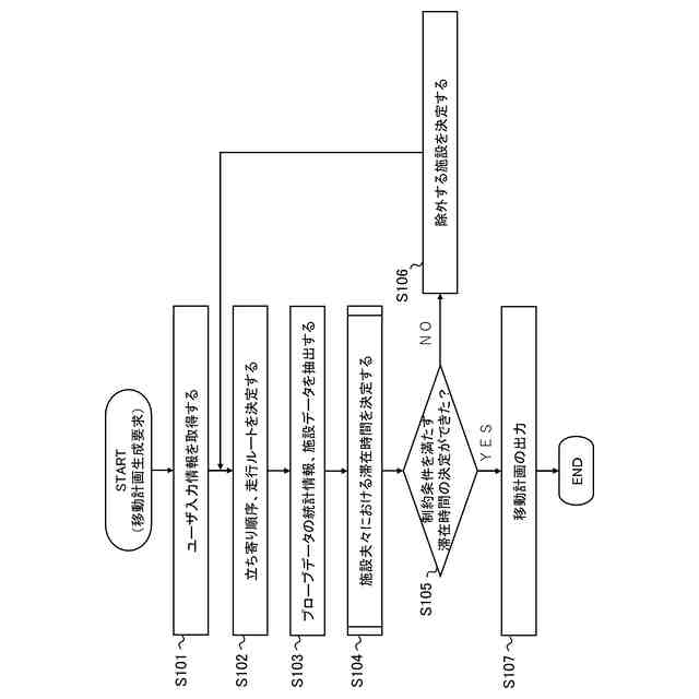 例えば、特許文献1等の従来のシステムは、ユーザが提示する滞在予定時間等の情報に加え、あらかじめ記憶手段に保持されている滞在候補地と交通手段の情報を基に外出計画を生成する。これにより、滞在時間も考慮した、滞在予定地と移動経路の情報である推奨外出計画が作成され、ユーザによる旅行計画(外出計画)の作業時間を削減することができる。しかしながら、本件発明者は、従来のシステムには次のような問題点があることを見出した。すなわち、従来のシステムでは、当該時間帯における走行ルートの混雑状況、施設及び駐車場の混雑状況、入出庫にかかる時間等を考慮した詳細な計画は立てることができない。実際の周遊では、滞在候補地の施設及び駐車場の混雑により、想定以上の滞在時間を要してしまうことがあり得る。この場合、滞在予定時間の短縮、外出計画の修正作業等で、ユーザの旅行の体験価値が低下する虞がある。