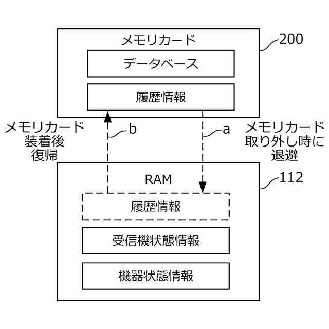 RAM112とメモリカード200に記憶されている情報を示す図である。
