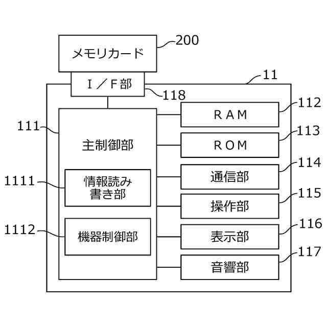 前記記憶部と、自機から取り外し可能な外部記憶媒体とに対して、情報の読み書きを行う情報読み書き部とを備え、