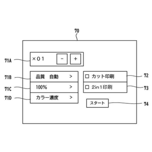 コントローラ10は、CPU11と、メモリ12とを備えている。CPU11は、メモリ12から読み出したプログラムに従って、また、ユーザの操作に基づいて、各種の処理を実行する。なお、MFP1は、コントローラ10として、単一のハードウェアのみを備える以外にも、各機能に応じた複数のハードウェアを備えていてもよい。メモリ12には、オペレーティングシステム(以下「OS」とする)21と、印刷プログラム22と、印刷設定情報23と、を含む各種のプログラムや各種のデータが記憶されている。印刷プログラム22は、OS21と協働して、MFP1に各種の動作を行わせるプログラムである。各プログラムやデータについての詳細は、後述する。メモリ12は、各種の処理が実行される際の作業領域としても利用される。CPU11が備えるバッファも、メモリの一例である。印刷設定情報23には、RAMなどの揮発性メモリに記憶される情報と、NVRAMなどの不揮発性メモリに記憶される情報とがある。