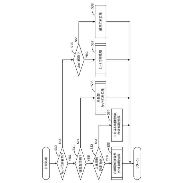 取得した印刷ジョブに、カット印刷と、複数部印刷と、をする場合であって、白紙の生成を抑制する設定がされている場合には、
