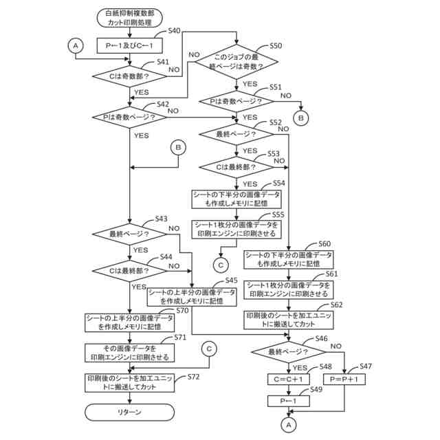 白紙抑制複数部カット印刷処理の手順を説明するフローチャートである。