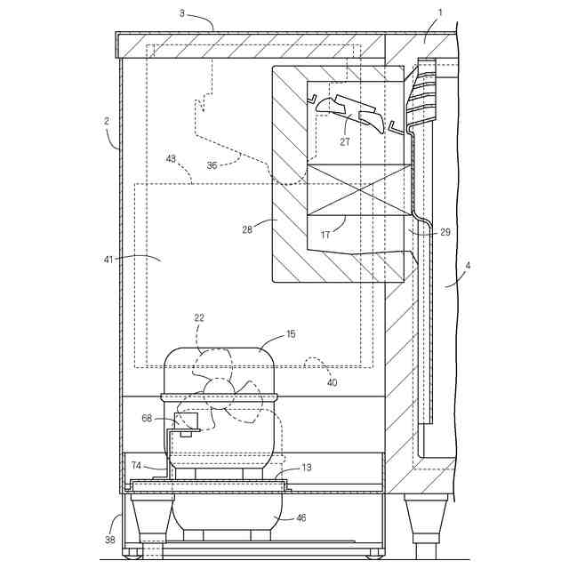 機械室(7)の前部に、貯蔵室(4)を冷却するための冷却ユニット(8)が収容されており、