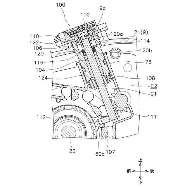 ケースは、クランクケース内でクランクケースに取り付けられ、クランク室とベルト室とを区画するクランクケースカバーをさらに含んでもよい。可動シーブの一部及びシャフトは、クランクケースカバーの内部に配置されてもよい。この場合は、位置検出機構の一部をクランクケースカバーによって保護することができる。