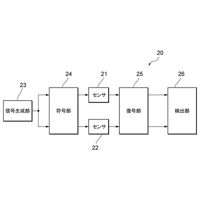 前記第1センサから送信される第1検出信号を前記第1符号に従って復号し、前記第2センサから送信される第2検出信号を前記第2符号に従って復号する復号部と、