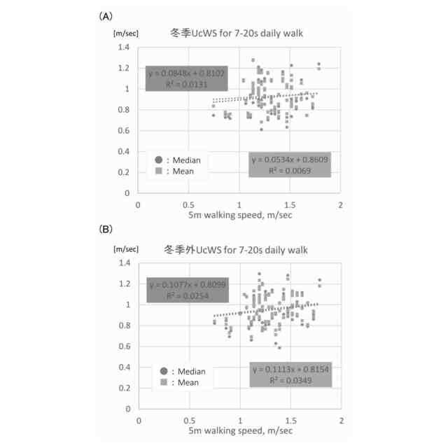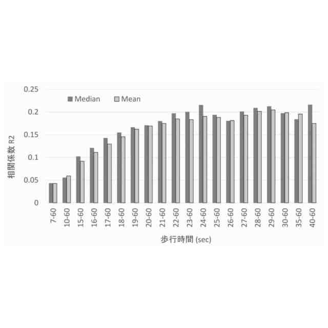 公開番号2025158503 公報種別公開特許公報(A) 公開日2025-10-17 出願番号2024061095 出願日2024-04-04 発明の名称認知機能の評価システムおよび評価プログラム 出願人国立大学法人秋田大学 代理人個人 主分類A61B 10/00 20060101AFI20251009BHJP(医学または獣医学;衛生学) 要約【課題】日常生活の環境下で収集された歩行速度測定データに基づいて、認知機能の評価を行うことが可能な、認知機能の評価システムを提供する。 【解決手段】人物の日常生活から収集された歩行データから、所定の条件セットを全て満たす歩行の速度データを抽出する歩行速度データ抽出部と、条件セットを全て満たす歩行の速度の平均値または中央値を説明変数とし、認知機能の指標を被説明変数とする回帰モデルと、歩行速度データ抽出部により抽出された歩行の速度の平均値または中央値と、回帰モデルとに基づいて、認知機能の指標を算出する認知機能推定部と、を備え、上記条件セットが、歩行時間が14秒以上であることと、歩行速度が1.67m/sec以下であることと、単位時間当たりの歩数が0.5~2.5歩/secであることと、歩幅が0.10m以上であることと、を含む、認知機能評価システム。 【選択図】図11 特許請求の範囲【請求項1】 人物の日常生活から収集された歩行データから、所定の条件セットを全て満たす歩行の速度データを抽出する、歩行速度データ抽出部と、 前記条件セットを全て満たす歩行の速度の平均値または中央値を説明変数とし、認知機能の指標を被説明変数とする、回帰モデルと、 前記歩行速度データ抽出部により抽出された歩行の速度の平均値または中央値と、前記回帰モデルとに基づいて、前記認知機能の指標を算出する、認知機能推定部と、 を備え、 前記条件セットが、 歩行時間が15秒以上であることと、 歩行速度が1.67m/sec以下であることと、 単位時間当たりの歩数が0.5~2.5歩/secであることと、 歩幅が0.10m以上であることと、 を含むことを特徴とする、認知機能評価システム。 続きを表示(約 1,000 文字)【請求項2】 前記条件セットが、 歩行距離が250m以下であること をさらに含む、請求項1に記載の認知機能評価システム。 【請求項3】 前記条件セットが、 歩行時間が18秒以上であること を含む、請求項1又は2に記載の認知機能評価システム。 【請求項4】 前記条件セットが、 歩行時間が21秒以上であること を含む、請求項1又は2に記載の認知機能評価システム。 【請求項5】 前記条件セットが、 歩行時間が60秒以下であること をさらに含む、請求項1又は2に記載の認知機能評価システム。 【請求項6】 前記条件セットが、 歩行が冬季以外の季節に行われたこと をさらに含む、請求項1又は2に記載の認知機能評価システム。 【請求項7】 人物の日常生活から前記歩行データを収集する、歩行データ収集部 をさらに備える、請求項1又は2に記載の認知機能評価システム。 【請求項8】 人物の日常生活から収集された歩行データから、所定の条件セットを全て満たす歩行の速度データを抽出する、歩行速度データ抽出ステップと、 前記条件セットを全て満たす歩行の速度の平均値または中央値を説明変数とし、認知機能の指標を被説明変数とする回帰モデルと、前記歩行速度データ抽出部により抽出された歩行の速度の平均値または中央値とに基づいて、前記認知機能の指標を算出する、認知機能推定ステップと、 を含み、 前記条件セットが、 歩行時間が14秒以上であることと、 歩行速度が1.67m/sec以下であることと、 単位時間当たりの歩数が0.5~2.5歩/secであることと、 歩幅が0.10m以上であることと、 を含むことを特徴とする、認知機能評価プログラム。 【請求項9】 前記条件セットが、 歩行距離が250m以下であること をさらに含む、請求項8に記載の認知機能評価プログラム。 【請求項10】 前記条件セットが、 歩行時間が18秒以上であること を含む、請求項8又は9に記載の認知機能評価プログラム。 (【請求項11】以降は省略されています) 発明の詳細な説明【技術分野】 【0001】 本発明は、軽度認知障害の診断のための指標を提供することが可能な、認知機能の評価システムおよび評価プログラムに関する。 続きを表示(約 3,700 文字)【背景技術】 【0002】 超高齢化社会を迎える本邦において、認知症の一歩手前の状態とされる軽度認知障害(MCI)を早期に捉えることは、医療対策のみならず社会的対策を講ずるうえで重要である。これまでのMCIスクリーニング陽性の有無を対象としたリスク因子解析において、運動不足、脳血管因子及び不安・神経症などが重要な要素であると報告される。特に、直接認知機能を評価する以外の手法として運動機能評価があり、その手法には30秒間の座り立ちテスト、膝伸展力、握力、6分間歩行テスト、5m歩行速度など様々ある。 【先行技術文献】 【非特許文献】 【0003】 Beauchet O, Allali G, Launay C, et al. Gait variability at fast-pace walking speed: a biomarker of mild cognitive impairment The journal of nutrition, health & aging. 2013; 17: 235-9. Lee S, Shin C. Interac
