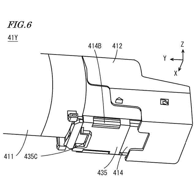 前記リンク機構は、一端に前記摺動部を有し、前記着脱方向に交わりかつ前記収容空間を横切らない回転軸の周りで回転可能に前記収容部に接続された第1リンクと、