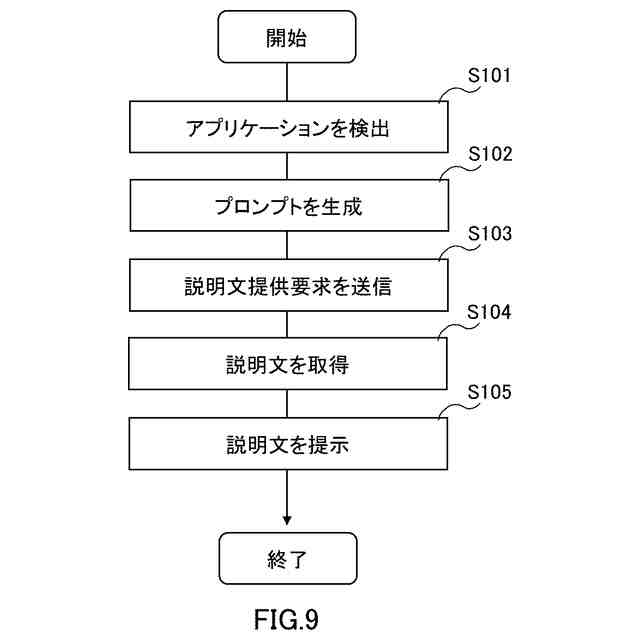 本発明の第3の視点によれば、端末に搭載されたコンピュータに、自装置にインストールされた、複数のアプリケーションそれぞれの操作履歴を取得する、取得処理と、前記複数のアプリケーションのうち、利用者が使い方の説明を求めるアプリケーションとして選択されたアプリケーションの前記操作履歴を用いて、言語モデルに入力するためのプロンプトを生成し、前記生成されたプロンプトを用いて前記言語モデルから得られた前記選択されたアプリケーションの使い方に関する説明文を前記利用者に提示する、制御処理と、を実行させるためのプログラムが提供される。