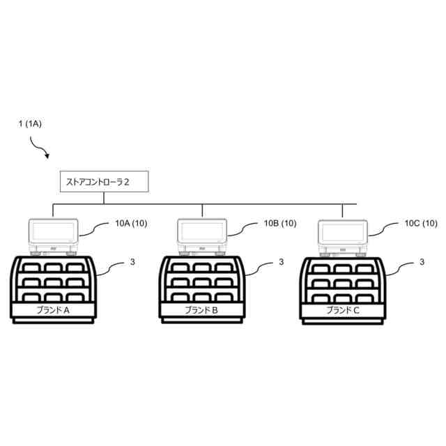 同一テナント内で複数ブランドの商品を販売する場合、陳列ケースごとに配置される計量装置は、当該陳列ケースに陳列されるブランドの商品に対応した表示画面を展開し、当該表示画面に従って商品の販売が行われる。しかし、陳列商品が減少し、閉店に近づくに連れて複数のブランドの商品をまとめて陳列することがある。この際には、各ブランド商品の情報を表示画面上に呼び出して操作するために、該当するブランド用の計量装置で操作が行わなければならず煩雑であった。