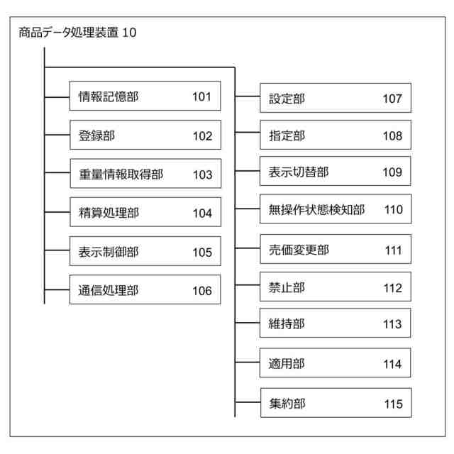 本発明の実施形態に係る商品データ処理装置のソフトウェア構成の一例を示したブロック図である。