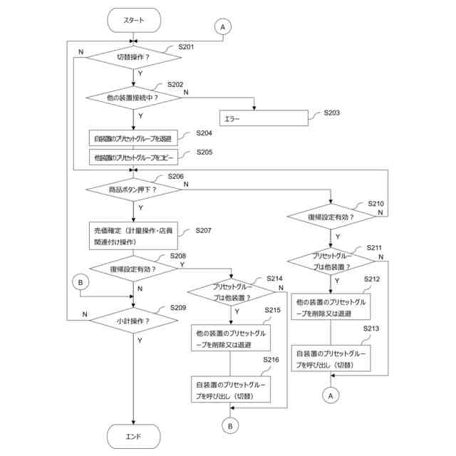 商品登録操作において登録商品を選択するための商品ボタンを複数配置するプリセットページと、複数の該プリセットページをグループ化して設定するプリセットグループ設定手段と、