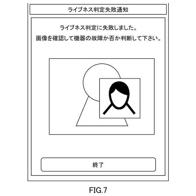 本発明の第2の視点によれば、認証端末と、サーバ装置と、を含み、前記サーバ装置は、前記認証端末から画像データを取得する、取得手段と、前記取得した画像データを用いて、認証対象が生体か否か判定するライブネス判定を実行すると共に、前記ライブネス判定の結果が失敗の場合、前記認証対象が写る画像データを含むライブネス判定失敗通知を第1の端末に送信する、認証制御手段と、を備える、システムが提供される。