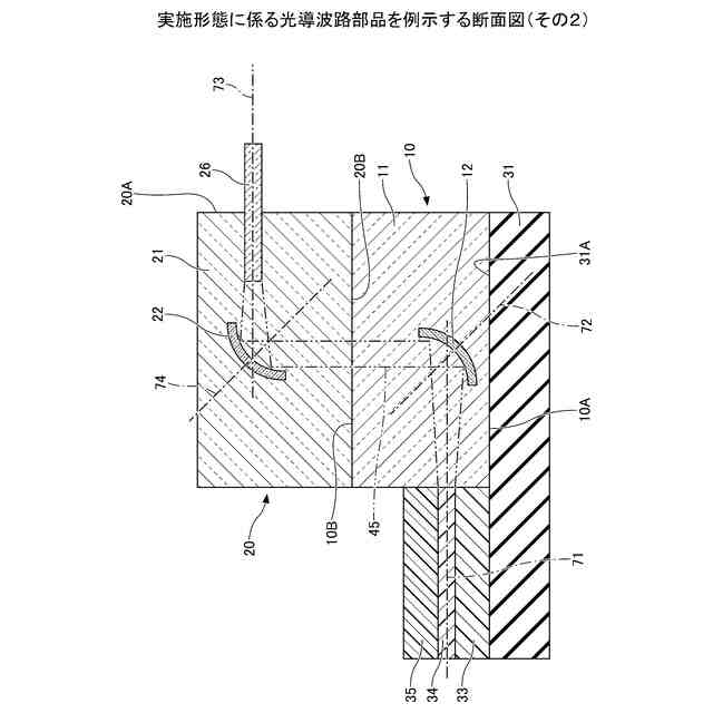 実施形態に係る光導波路部品を例示する断面図(その2)である。