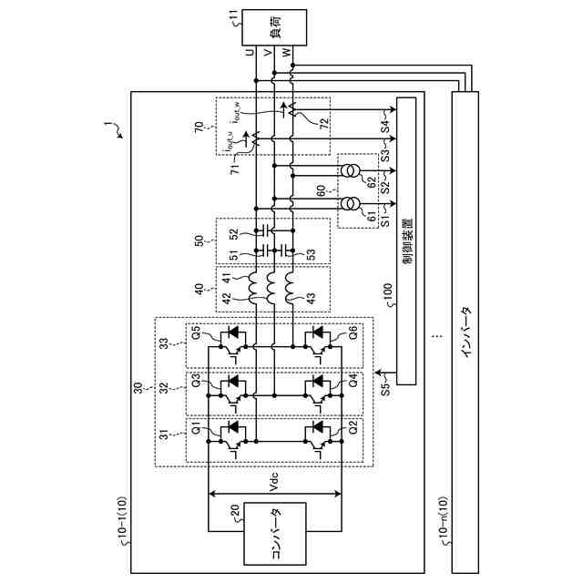 特許文献1には、複数のインバータを並列運転する際に、仮想インピーダンス制御を行うことで、複数のインバータ間に流れる横流を抑制する技術が開示されている。特許文献2には、並列に接続されたインバータの同期制御を、複数のインバータに共通の専用回路で行う技術が開示されている。特許文献3には、インバータからの出力電流の高周波成分をバイパスフィルタで検出し、複数のインバータ間に流れる横流の発生を抑制する技術が開示されている。