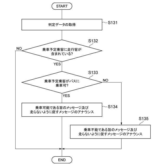 (2)上記の(1)において、報知部は、走行客判定部により走行客が存在すると判定されたときに、乗車可否判定部による判定結果に応じて、走行客が車両に乗車可能であるか否かの旨を伝えるメッセージを走行客が走らないように促すメッセージと共に走行客に対して報知してもよい。