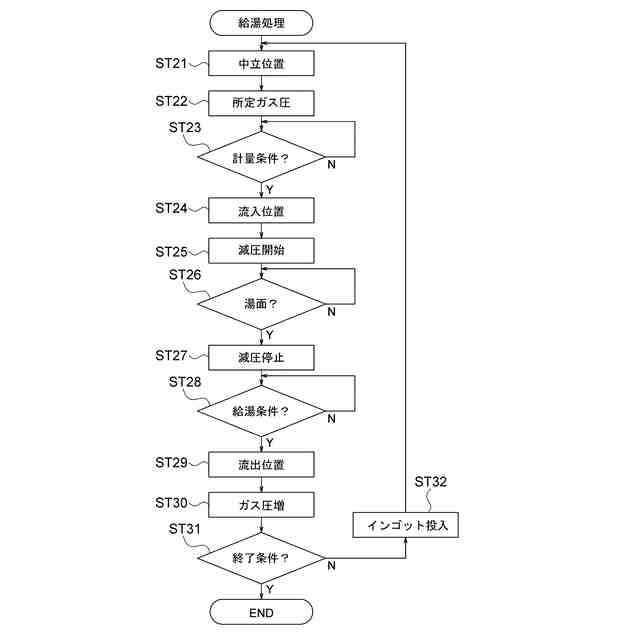 特許文献4では、炉に通じる流入口から計量室への溶湯の流入、及び計量室からダイカストマシンの射出装置への溶湯の流出を制御する弁体が開示されている。炉からの溶湯を計量室へ流入させる流入口は、計量室の側方に位置している。計量室からの溶湯を射出装置へ流出させる流出口は、計量室の下方に位置している。弁体は、円柱状に構成されており、軸方向の移動によって、流入位置と流出位置との間を移動する。流入位置では、流入口と計量室とを通じさせるとともに流出口を計量室から遮断する。流出位置では、計量室と流出口とを通じさせるとともに流入口を計量室から遮断する。