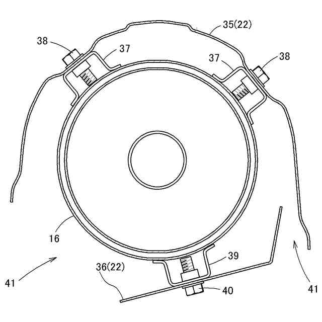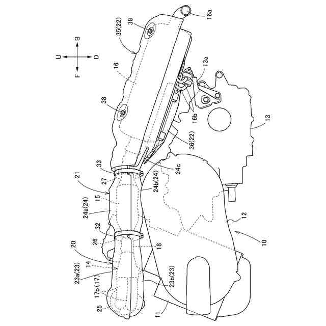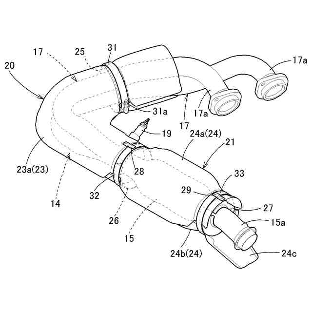【解決手段】マフラー16を覆うマフラーカバー22が備えられている。マフラーカバー22は、マフラー16の上部を覆う上部カバー35と、マフラー16の下部を覆う下部カバー36とを備えている。上部カバー35と下部カバー36とは、分割されて離間した状態で個々にマフラー16に取り付けられている。