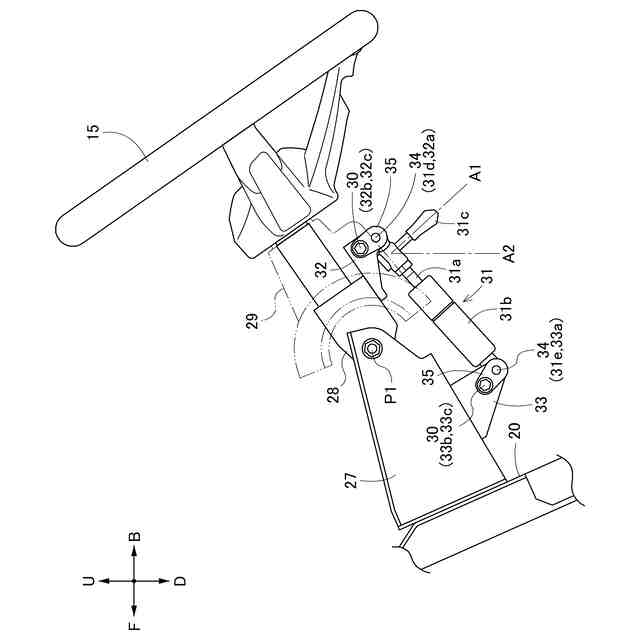 これにより、角度設定シリンダによる操縦ハンドル(支持部)の上下角度の固定に、ガタ付きが存在すると、操縦ハンドル(支持部)の振動が大きくなり、操縦ハンドル(支持部)等の破損に発展する可能性があるので、角度設定シリンダによる操縦ハンドル(支持部)の上下角度の固定において、ガタ付きを少なくすることが要望されている。