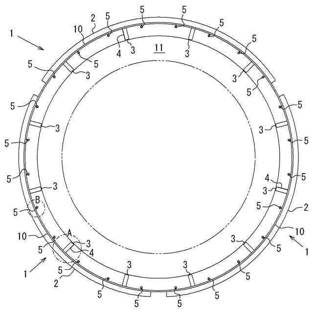 【解決手段】補修又は補強のために既設柱状コンクリート構造物(PCウェル11)の廻りに設置される補強鋼板1において、既設柱状コンクリート構造物(PCウェル11)との間隔を保持するための複数の間隔保持材(スペーサーガイド3,3’)を内面から突設するとともに、複数の間隔保持材(スペーサーガイド3,3’)の一部の脇に、既設柱状コンクリート構造物(PCウェル11)との隙間Gを一定範囲に区切る仕切り板4を内面に取り付ける。