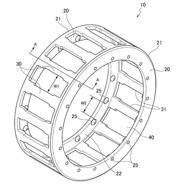 [1] 軸方向に離間して同軸に配置される円環状の一対のリム部と、