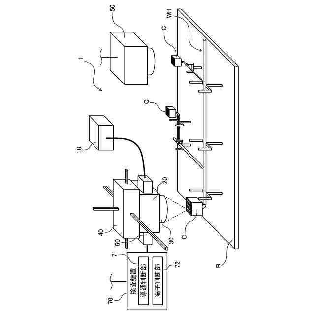 前記照射手段の各端子へのレーザ光の照射時に、各端子が取り付けられた電線の反対端部における温度が前記赤外線カメラによって所定温度以上上昇したことが確認された場合に該当回路が導通状態であると判断する検査手段と、