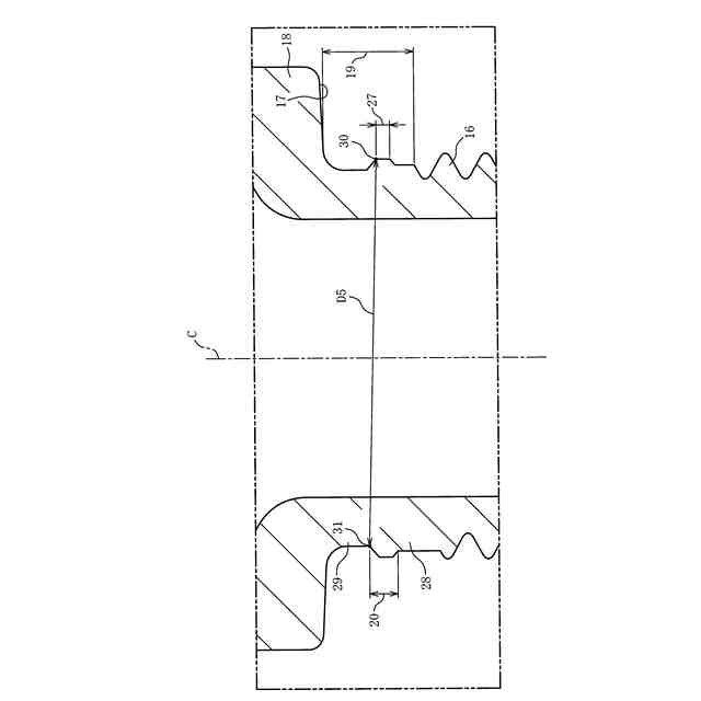 第3の態様は、第2の態様において、中心線を含む主体金具の断面において、鍔部の外径が最も大きい部分のうち最も後端側の第1の点を設定し、首部のうち鍔部より後端側の部分に位置し、かつ、中心線を挟んで第1の点の反対側のうち第1の点に最も近い位置に第2の点を設定したときに、第2の点と第1の点との間の距離は、凸部の内径よりも大きい。