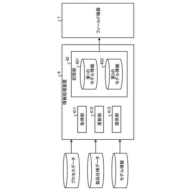 【解決手段】情報処理装置4は、取得部411と、更新部412と、を有する。取得部411は、フィールド機器の測定対象物に関する情報を示すプロセスデータ、及びフィールド機器に関する情報を示す製品仕様データを取得する。更新部412は、フィールド機器に備えられたセンサのセンサ値を基に推定データを算出する事前学習済みモデルのパラメータ又は構造を、プロセスデータ及び製品仕様データを基に更新する。